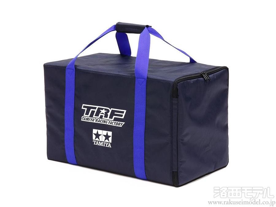 シックなネイビーブルーにホワイトのTRFロゴ、そしてライトブルーのベルトが鮮やかなRCバッグです。1/10ツーリングカーなどがぴったり入るインナーボックス2個付き。マシンの他に工具やタイヤ、送信機などを整理して収納できます。またサイドの開口部はダブルファスナーを採用。