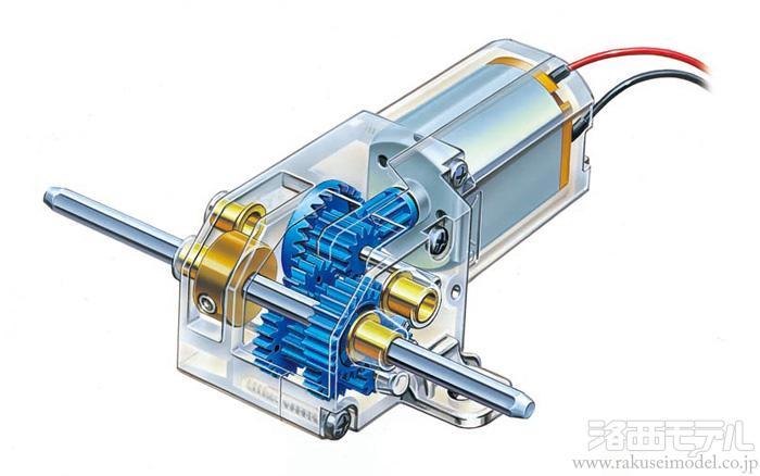 ミニモーターを採用して、1/35スケールの戦車はもちろん1/48スケールの重戦車や中戦車にも搭載できるコンパクトサイズのギヤボックスです。消費電力が小さく、ノイズが発生しにくいので、RC化やセンサーを使った工作、ロボット工作などにも幅広く使えます。標準ギヤボックスは7.5:1、 9.5:1、15.7:1、19.9:1、32.9:1、41.8:1、79:1、87.8:1の8種類のギヤ比が選択可能。ケースやギヤは高精度なプラスチック製、3mm六角出力シャフトは丈夫な金属製。動きに変化をつけるクランクプレートも付いています。ギヤケースはメカニカルなクリヤーカラーを採用しました。