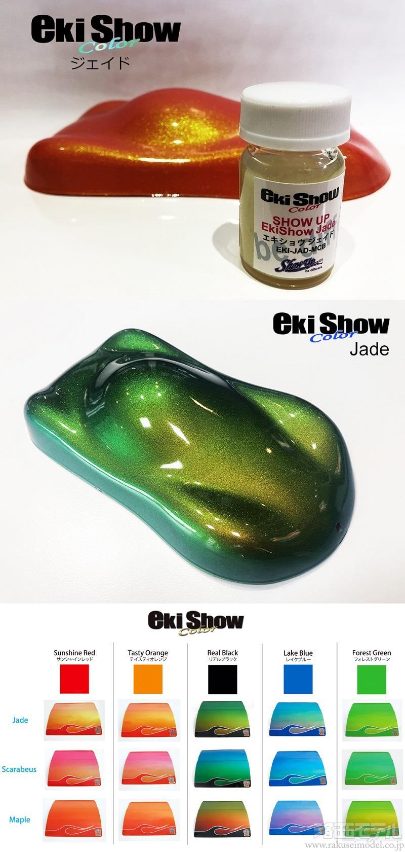 EkiShowカラーは3色。ジェイド(ゴールド系)、スカラビュース(ブルー系)、メイプル(パープル系)。