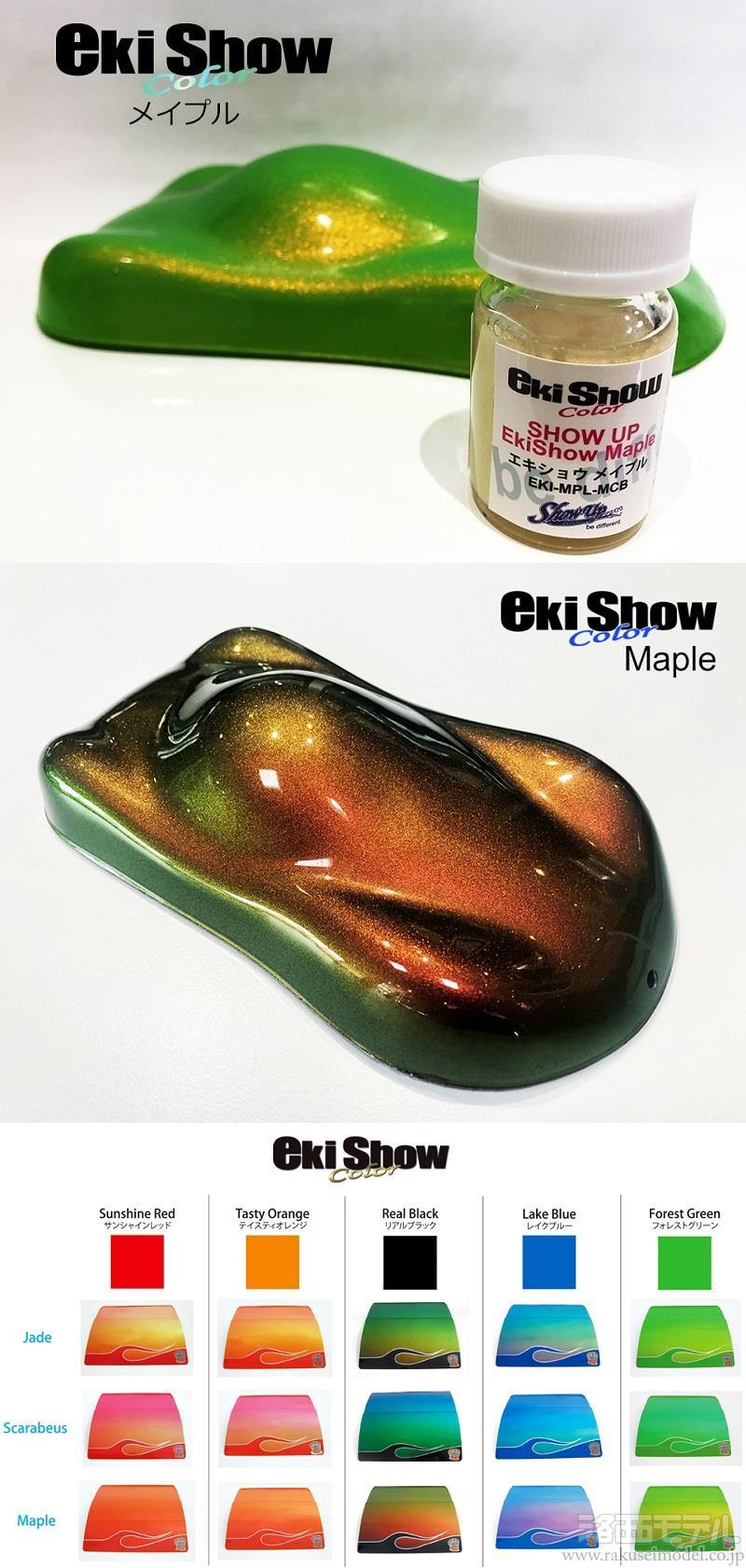EkiShowカラーは3色。ジェイド(ゴールド系)、スカラビュース(ブルー系)、メイプル(パープル系)。