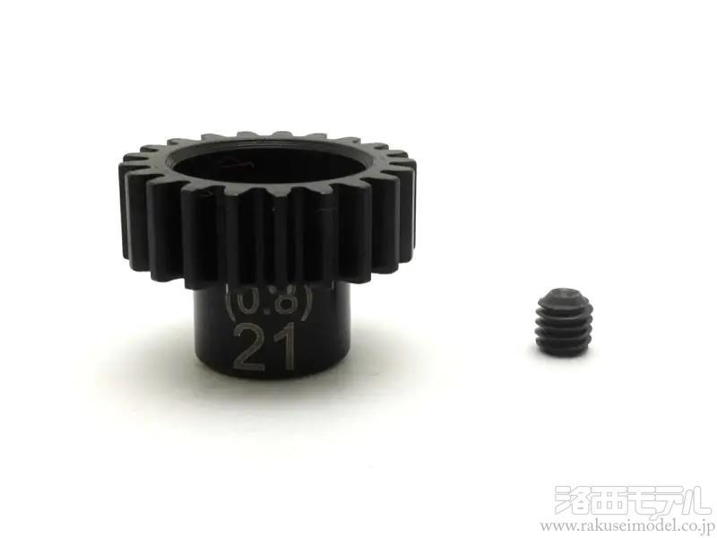 先にGP用としてリリースされる0.8モジュールスパーギヤに対応する、0.8モジュールピニオンギヤ各種(18T〜21T)。