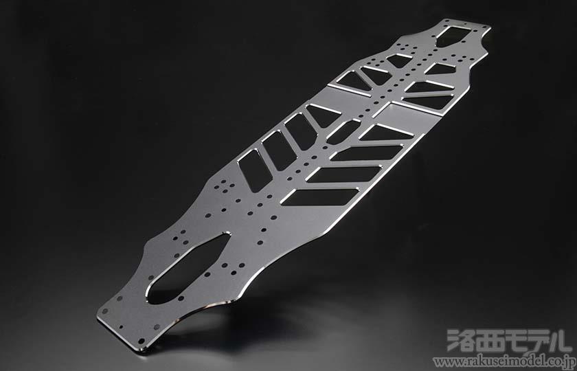硬度の高いアルミ素材を使用しながら、リヤ周りを中心に大胆な肉抜きを施すことで、ややリヤトラクションが高まるシャーシ特性となります。