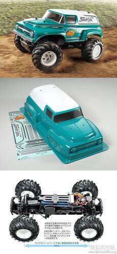 1950年代のアメリカン・パネルバンをイメージしたクラシカルなスタイルが魅力の電動ラジオコントロールカー組み立てキットです。丸みを帯びたボリュームあるボンネットや独特な形のタイヤハウジング、低い位置に配置されたヘッドライトやグリルなど、ファニーなムードただようボディはポリカーボネート製。ボディ本体はコバルトグリーン、ルーフ部分をホワイト、ウインドウをスモークで塗装済みとし、ホイールアーチのカットやボディキャッチの穴開け加工も施しました。また、カボチャのイラストや車名ロゴはステッカーでセット。ボディのアクセントとなるゴールド/ブラック/ブルーのピンストライプも用意しました。シャーシは前後の動力伝達にギヤを使用するギヤドライブ4WDのGF-02を採用。フリクションダンパーを備えた足まわりと、大径タイヤもあいまって、舗装路からオフロードまでダイナミックに走破します。