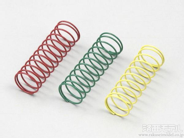 リヤサスペンションの硬さを調整するスプリングセット。硬さの異なる3タイプ入り。