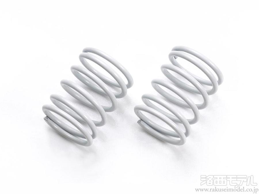 1/10エンジンRCカーの主にフロントサスペンション用ダンパースプリングとして使用。コースレイアウトや路面状況にあわせて、また前後で硬さを変えてステアリング特性のセッティングも可能です。