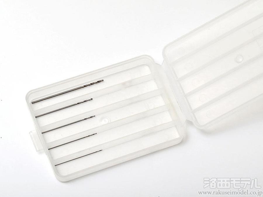 精密ピンバイスに装着できる極細ドリル刃セットです。飛行機や艦船、戦車モデルの機銃銃身などの開口や真ちゅう線を使っての追加加工など、高い品質でスケールモデルのディテールアップに活躍します。プラスチックをはじめ木材、アルミなどの穴あけ加工にも使えます。収納ケースとサイズ表示ステッカー付き。