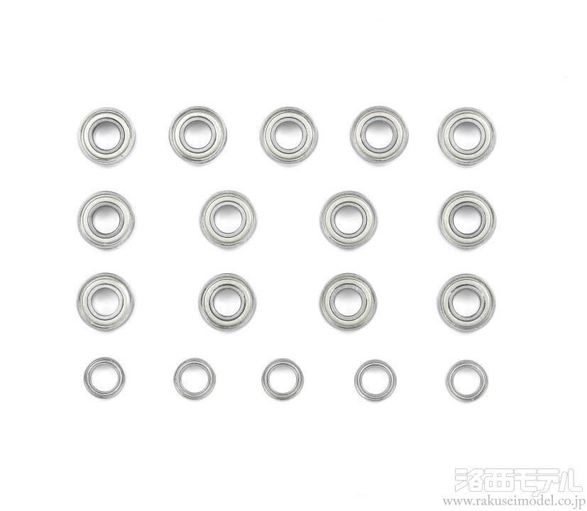 ボールベアリングの装備はチューンナップの第1歩。駆動ロスを減らして走行時間をのばし、軸受け部分の耐久性も高めます。