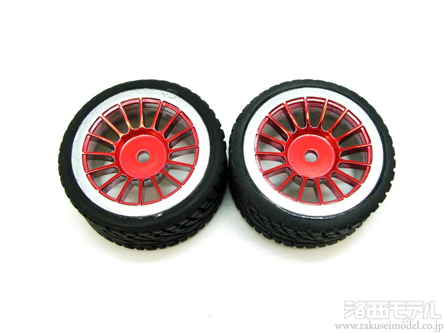 H16R ミニ用接着済 Vパターンタイヤ 16スポーク レッド