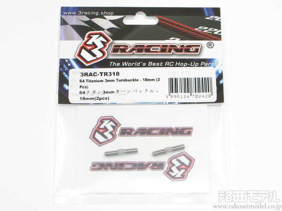 3RAC-TR345 64チタン3MMターンバックル 45MM(2P)51626 3×8MMスチール六角丸ビス(10本)54257 5MM強化アジャスター(グレイ8個)50197 スナップピン セット51049 ミディアムナロー レーシングスリックタイヤ