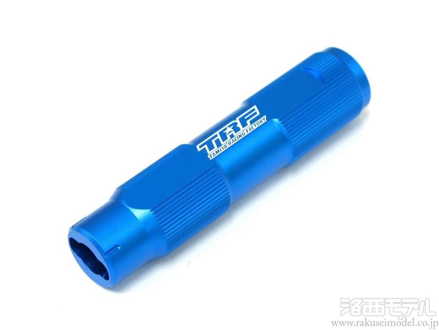 TRF511、TRF201などの電動バギーに使用されている5mm強化アジャスター専用の工具です。ターンバックルなどのネジ部にアジャスターを締めこむ作業は硬く手間がかかりますが、アジャスターレンチを使用することで小さい力で簡単に、さらに垂直に締めこむことができます。6mmアジャスターにも対応。