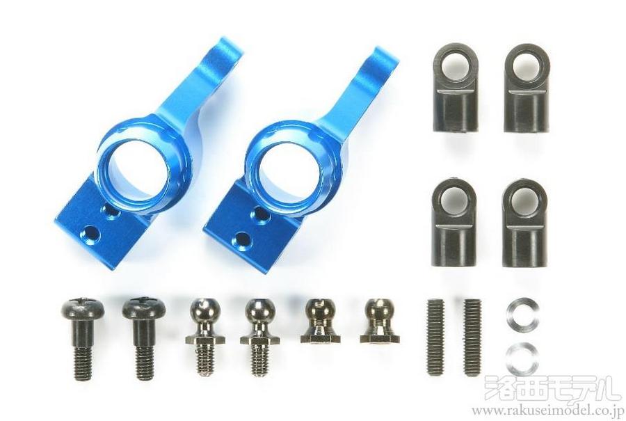 標準装備の樹脂製に換えて使用する、精度・剛性の高いアルミ切削製リヤアップライトです。ガタの軽減と剛性アップにより、サスペンションの曖昧さがなくなり、シャーシの運動性をいっそう発揮させることができます。M-05シャーシに取り付けた場合リヤのトーインは2度に、M-06シャーシに取り付けた場合リヤのトーインは3.5度になります。M-05用アジャスタブルアッパーアーム付き。ドレスアップ効果も高いブルーアルマイト仕上げ。