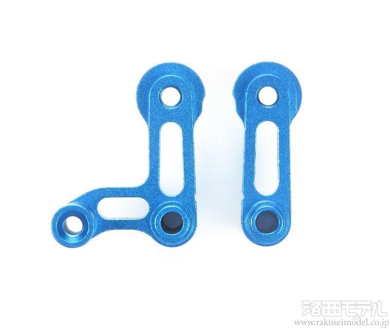標準装備のK5、K6部品に換えて使用するアルミ切削パーツです。ステアリング回りの剛性が高まり、より正確なハンドリングを実現。また、アルミステアリングブリッジと組み合わせての使用が効果的。作動面を大きく取ることで、過大な入力によるたわみや傾きを防ぎます。レーシングムードを高めるブルーアルマイト加工済み。
