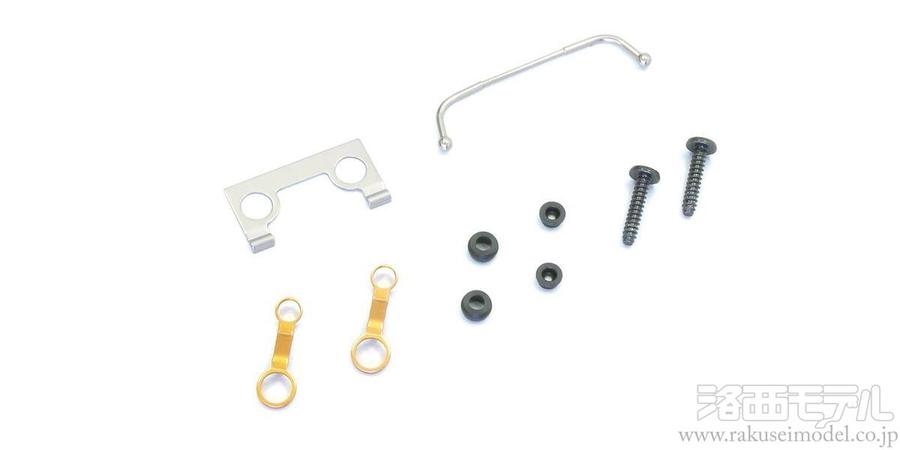 | MD003BK 小物パーツセット(AWD/ブラック) | AWD DWS用アルミリアサスホルダー(キャスター2°/トー2° | MZW2-40 ハイグリップタイヤ 40゜ | MDW105B アッパーロッドアルミスペーサー(DWS用) | MDW018-01 ボールデフ用メンテナンスキット(ミニッツAWD) |