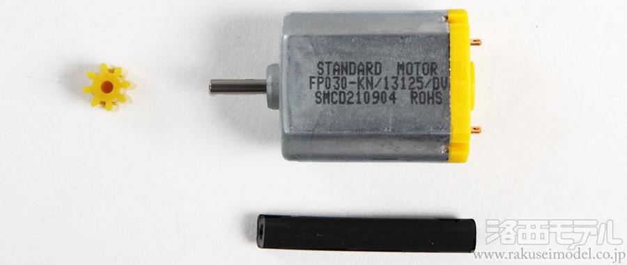 小型工作の製作に最適なミニサイズのモーターです。サイズは最大直径15.5mm、シャフトを含めた全長27mm、シャフト径1.5mm。ミニモーターギヤボックスのチューンナップモーターとして、またミニ水中モーターなどのスペアとしても使えます。モーター固定用の両面テープや8Tピニオンギヤ、動力伝達用のゴムパイプなどもセットしました。