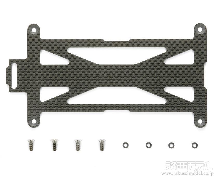 軽量・高剛性の2mm厚カーボン製。4本のビスで取り付けることで、シャーシ全体の剛性がアップ。ハンドリングの安定感が増し、トラクションも向上します。また、標準装備のK1部品に比べて11.5gの軽量化も実現。