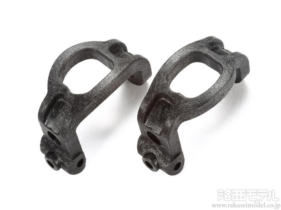 コーナーでのシャープな切り返しを重視してキャスター角を4度に設定し、小〜中型サーキットで効果を発揮。カーボンファイバー配合樹脂を使用した強度の高さと、ダブルカルダンドライブシャフトとの干渉を防ぐ形状となっているのもポイント。OP.928はもちろんOP.1569にも使用できます。