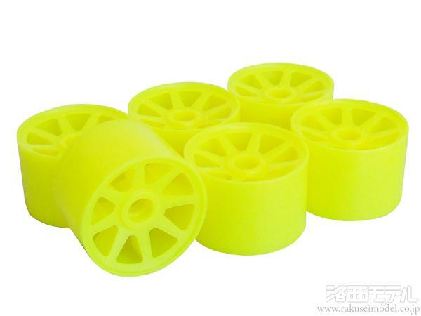 インドアコースなどで抜群の視認性を発揮する蛍光イエローのホイールです。