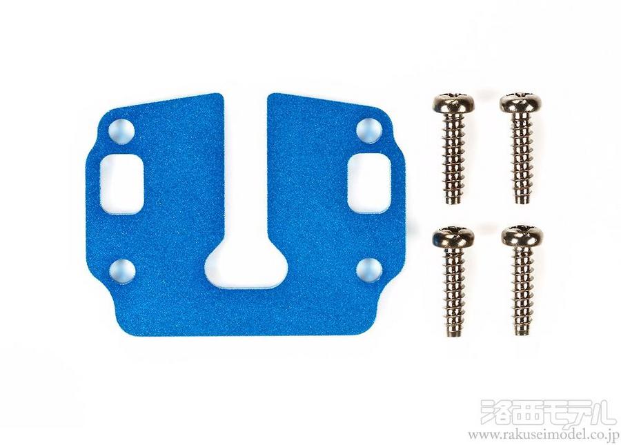 左右分割構造を採用しているWR-02シャーシ(ワイルドウイリー2など)や、GF-01シャーシ(トヨタ ランドクルーザー40 ピックアップ)の前部または後部に取り付けて、シャーシ剛性を高めます。大きな力が加わった場合でもシャーシが開く事がなく、砂やホコリなどがギヤケース内へ侵入するのを防ぎます。ブルーアルマイトカラーはドレスアップ効果も十分。前後に取り付ける場合は2セット必要です。