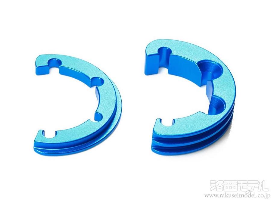 04モジュールのピニオンギヤなら最大で51Tまで使用できる、より高速仕様のアルミ製モーターアダプター。深く彫り込まれたヒートシンクにより、クーリング効果も抜群です。