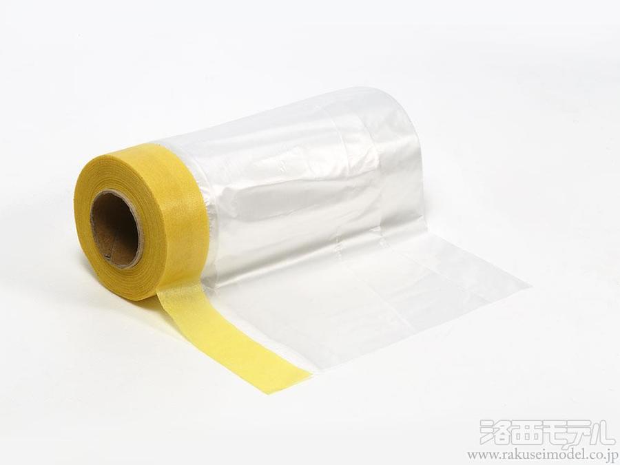 テープを貼り付けた後、折りたたまれたシートを広げれば、手軽に広い面積のマスキングが可能です。