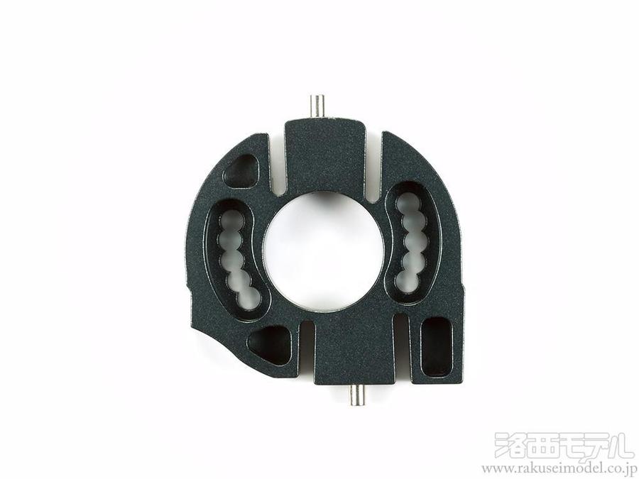 標準装備のC2パーツに換えて使用。モーターの取り付け剛性を高め、冷却効果もアップします。16T〜20Tの5種のピニオンギヤが使え、走行場所や路面に合わせたセッティングが可能です。ガンメタルカラーのアルマイト処理を施し、高級感あふれる仕上がりです。