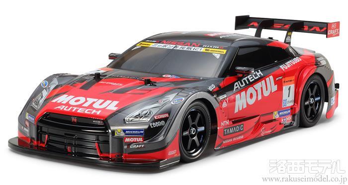 2014年に続き、SUPER GT GT500クラスの2年連続チャンピオンの座に輝いたMOTUL AUTECH GT-Rの電動ラジオコントロールカー組み立てキットです。エアダクトとルーバーを設けたボンネット、前後のフェンダーやボディサイドの複雑な形状など、2015年型の特徴を捉えたポリカーボネートボディは迫力たっぷり。小さなドアミラーと吊り下げ型のリヤウイングは別パーツ。また、リヤバンパーに取り付けられた空力パーツも別部品で用意しました。ガンメタルとレッドのカラーリングはレッド部分をステッカーで用意、大きな手間がかからず仕上げられます。シャーシはコントローラブルなシャフトドライブ4WDのTT-02を採用。チャンピオンの走りを手軽に体感できるマシンです。