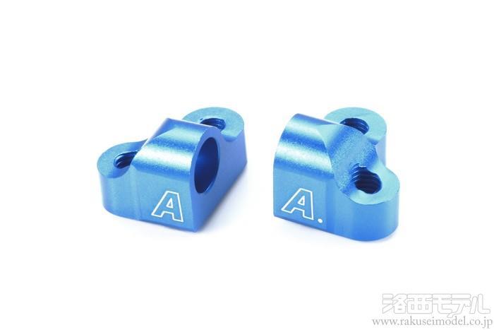 2本のビスと1箇所のボスによる3点留めとしたL型形状のアルミセパレートサスマウント。取り付け時のズレを軽減し、高強度も実現しました。主にフロントに使用します。