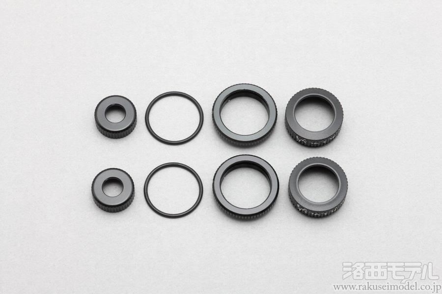 YD-4用オプションパーツ、スーパーローフリクション アルミ製ビッグボア ショック用の Oリングキャップ/アジャストナット/キャップナットです。