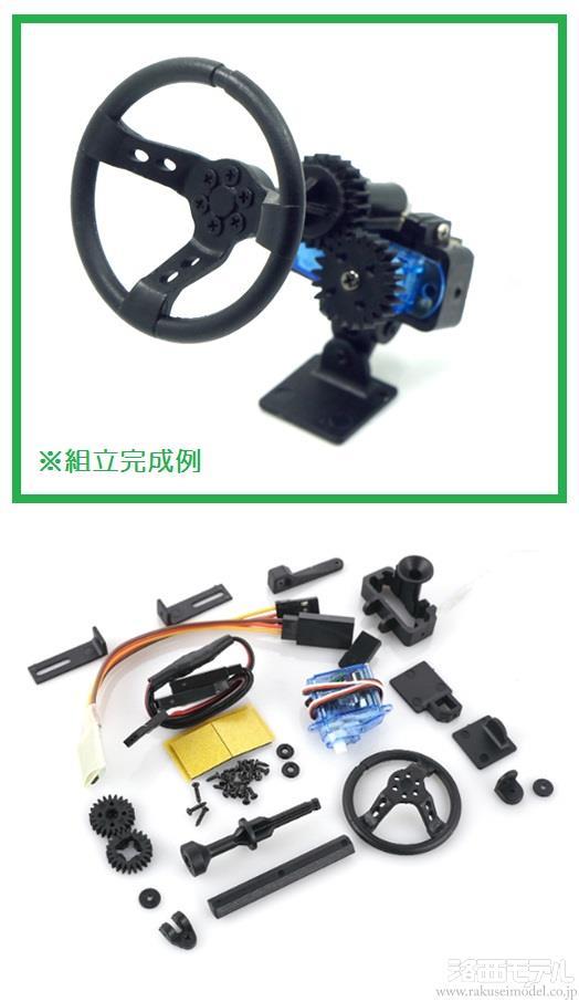 組み込まれたサーボでステアリング操作にあわせてハンドルが稼働します。