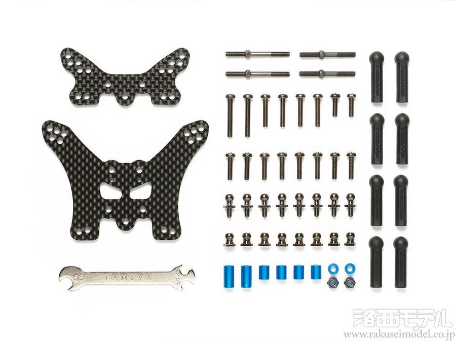 ★3.0mm厚カーボン製の前後ダンパーステーをはじめ、ピロボールやアジャスター、ターンバックルなどもセット