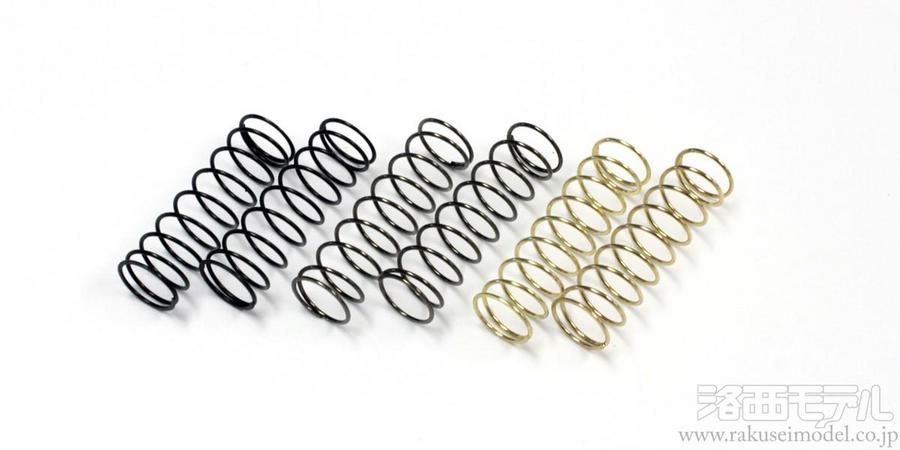 M(ミディアム)、H(ハード)、SH(スーパーハード)の3種類の硬さ違いのスプリングセット。