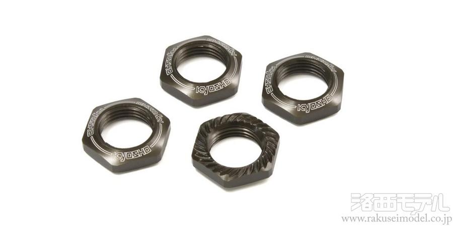 ホイルナット表面に【Kyosho】ロゴのレーザー彫刻あり。