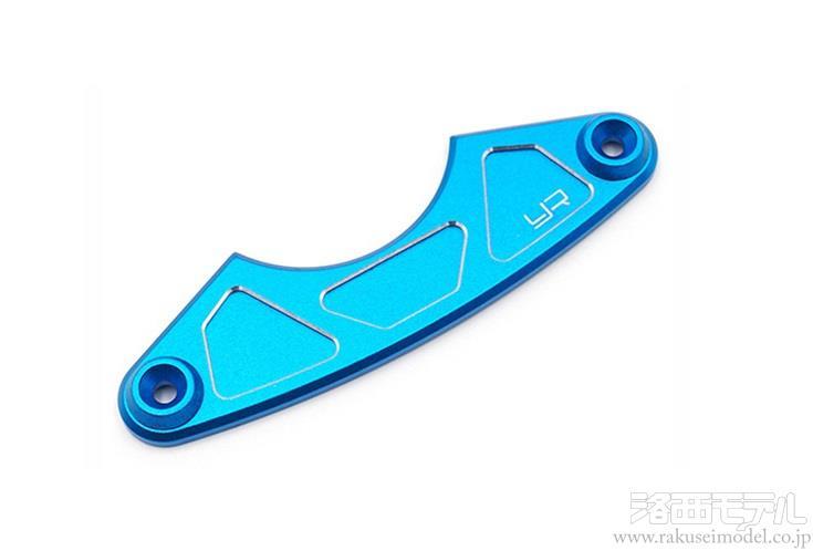 シルバーエッジ加工されたブルーアルマイトに、レーザー刻印のYRロゴ入り