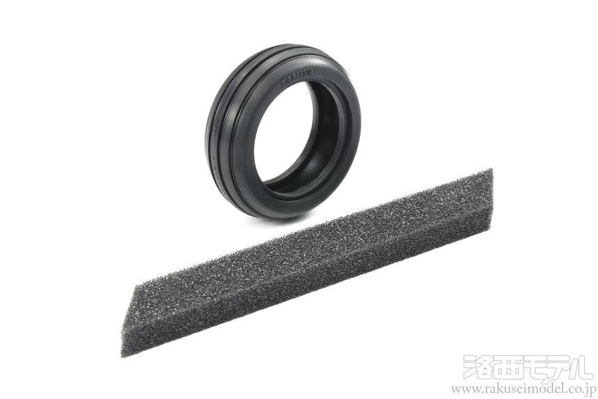 キット標準装備のタイヤに比べてソフトなコンパウンドを使用。グリップ力に優れ、滑りやすい路面や中速度での走行性能を高めます。付属のインナースポンジをゴム系接着剤でリング状に接着してタイヤ内部に入れ、瞬間接着剤でタイヤとホイールを接着して使います。