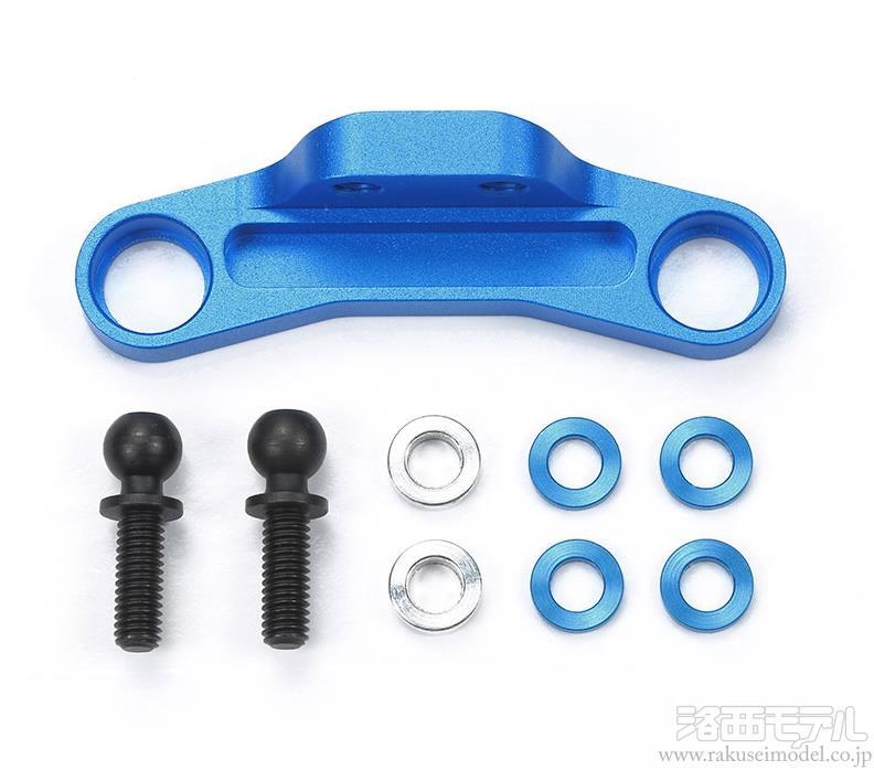 キット標準のK8パーツに換えて使用するブルーアルマイト加工されたアルミ切削製ステアリングブリッジ。スムーズな動作に加え、ステアリング時のダイレクト感もアップ。スペーサーの変更により、アッカーマンの調整も可能です。ITEM54891 M-08 CONCEPT アルミステアリングアームとの併用がお勧めです。