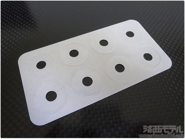 53585 シムセット(3×5MM)54855 φ5.5×0.5MM POMスペーサー(4個)53230 ワイドインナースポンジ・ハードセット50797 5MM アジャスター (ショート)50569 Mシャーシ8本スポークホイール(銀)