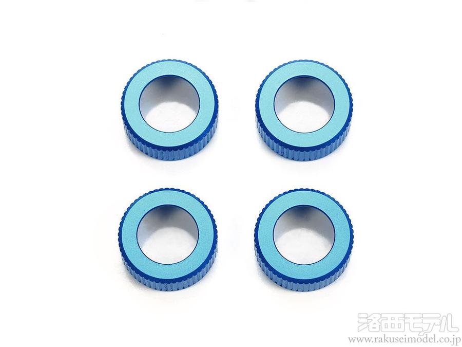 「OP.1871 TRFダンパー用強化V部品」、「ITEM42344 TRFダンパー用φ5.8mmショートピロボールナット(8個)」と組み合わせて使用する、TRF-SSBBダンパー用キャップ。ダンパーの基本性能を高め、セッティング幅を広げます。