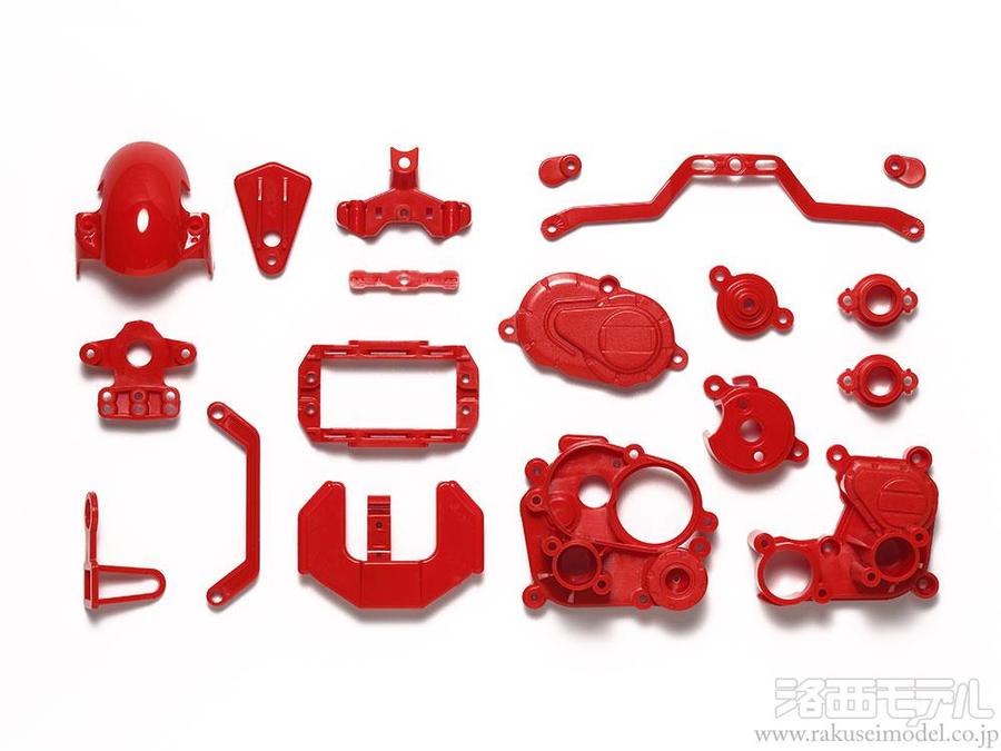 鮮やかなレッドカラーのギヤケースはシャーシをカラフルに仕上げ、ボディとのカラーコーディネートも楽しみです。