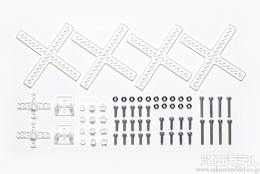 80×80mmクロスアーム4個、3mm六角シャフトに装着できる十字形クランクアーム2個、