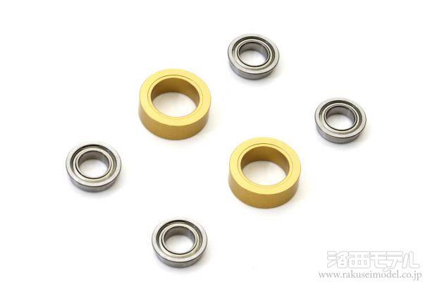 ベアリングホルダーはゴールドアルマイト処理済み。2セット入り。