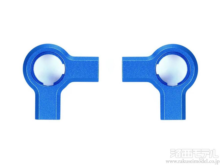 キット標準の樹脂製パーツ(D3)に換えて使用。剛性の高いアルミ製ロッカーアームがサスアームの動きを確実にダンパーに伝達します。鮮やかなブルーアルマイトカラーはシャーシのドレスアップとしても効果的。フロント、リヤの両方に使用する場合は2セット必要です。