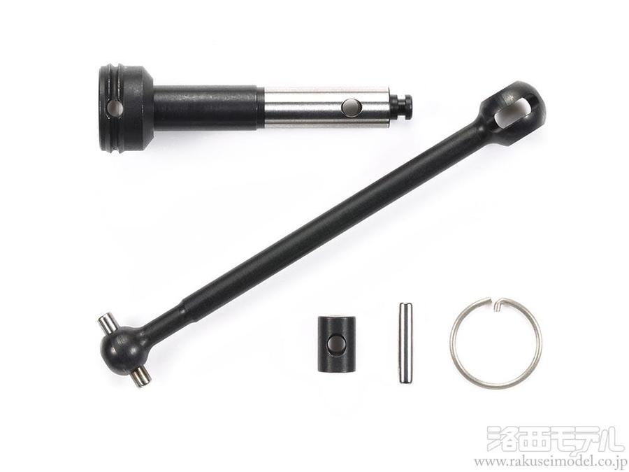 標準装備のドッグボーンとカップ式パイロットシャフトで構成される前後のプロペラシャフトに換えて使用。駆動効率と耐久性を高めます。また、クリップ式のアッセンブリーユニバーサル構造なので、脱着時の整備性アップとピン抜けリスクも減らします。