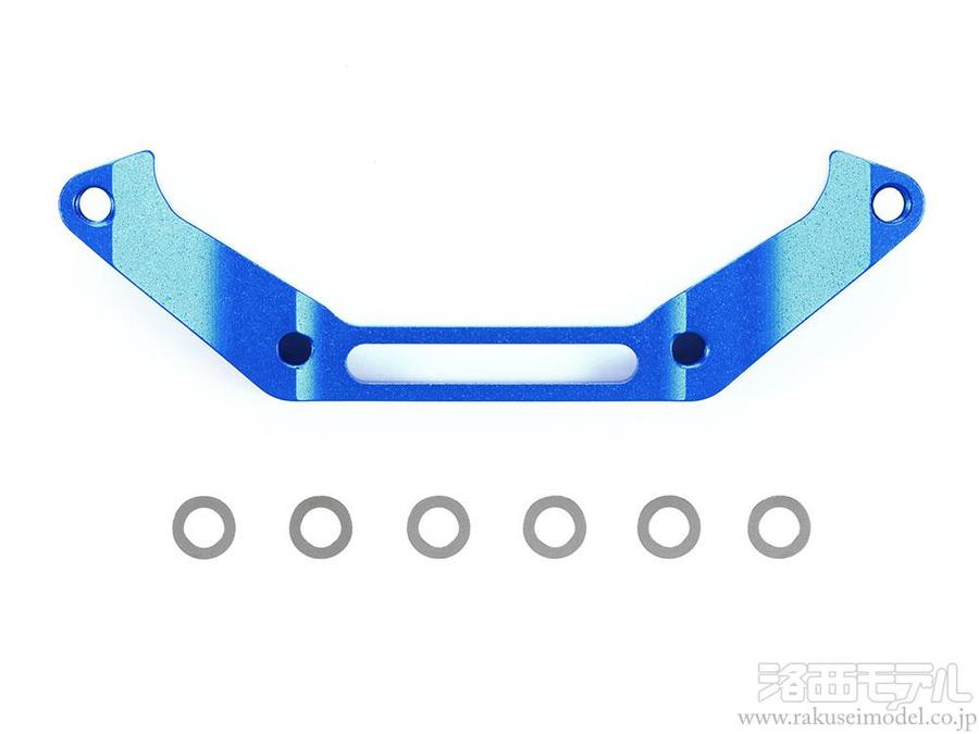 【 基本スペック 】 ブルーアルマイト加工されたアルミ製ステアリングブリッジと、3×5×0.1mmシムを6枚セット