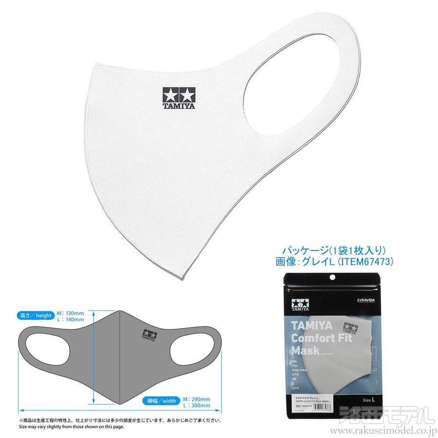 今や生活に欠かせないアイテムとなったマスク。誰もが着けているマスクだからこそ、こだわりをプラスしたいもの。そこで、タミヤマークが入った、模型ファンをさりげなくアピールするマスクが登場です。サイズはMとLの2種類、カラーはブラック、グレイ、ホワイトの3色。ベースカラーに合わせて、微妙に色調が異なるグレイのタミヤマークをプリントしました。立体形状で伸縮性があるのでフィット感に優れ、耳が痛くならないのもポイント。20回程度、洗ってくり返し使えます。さらに、天然由来の抗菌加工(セラビダ・フレッシュ)を施して、抗菌、消臭効果も期待できます。もちろん、UVカットや皮膚への刺激性の少なさなどの基本的な機能もばっちり。アメリカやヨーロッパの検査機関の認証も受けた安心して使えるマスクです。