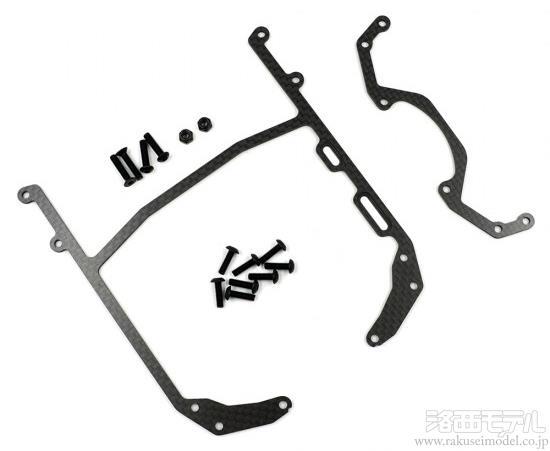 カーボンステフナーブレースセットを使用して、プラスチック製のタブによるシャーシのたわみを減らします。
