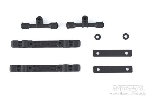 セットにはリアサスマウント(61.2mm)、リアサスマウント(62.0mm)、リアサスマウントサポート(2個)、1mm厚スペーサー(丸型、角型、各2個)が含まれます。