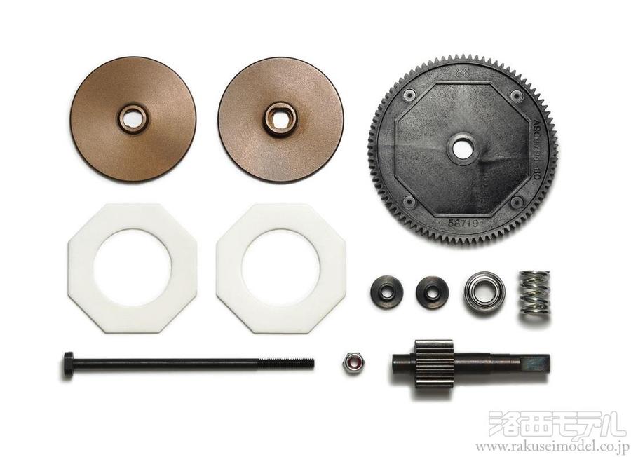 20Tギヤ一体型メインシャフト、86Tスパーギヤ、スリッパースクリュー、プレッシャープレート、スリッパーパッド、1050ベアリング、2.6mmロックナットなどをセット