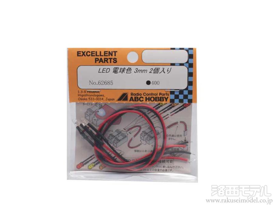 | 62686 LED 黄色 3MM 2個 | 62687 LED 赤色 3MM 2個 | 62682 LED 電球色 5MM 2個 | 62680 電飾コネクターセット | 62684 LED 白色 3MM 2個 |