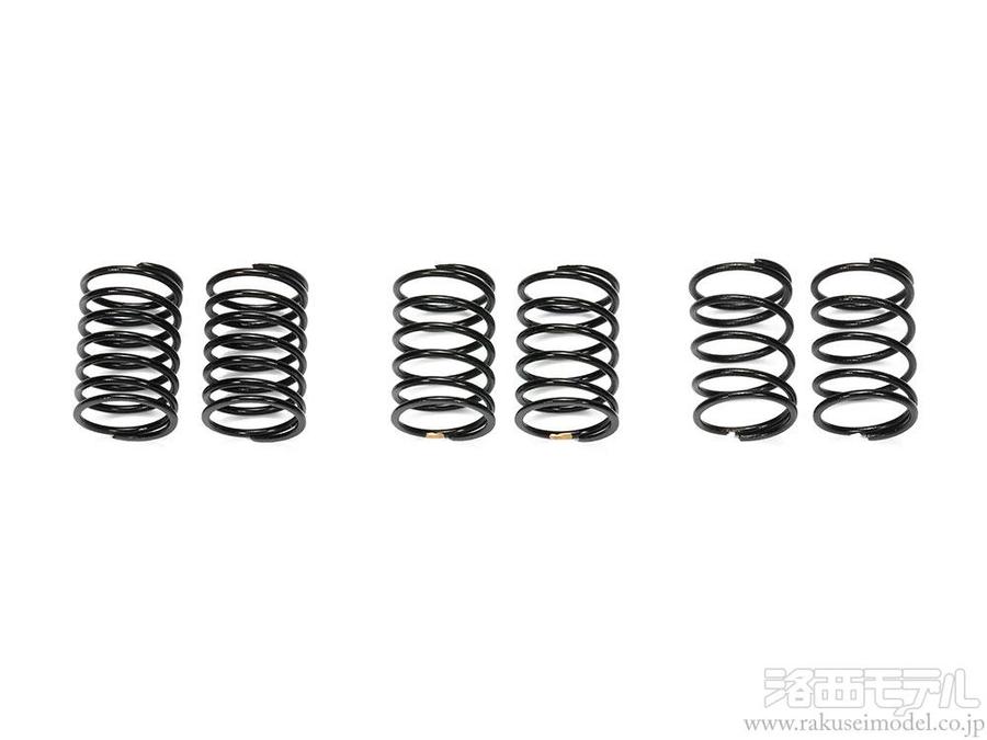 ITEM42168ツーリングカーショートタイプスプリングセットの各バネに対してハード寄りの特性を持たせました。スーパーハード(白)、ミディアムハード(金)、ミディアムソフト(黒)の3種スプリングを各2本ずつセット。ITEM42168と組み合わせて、いっそう繊細なセッティングが楽しめます。