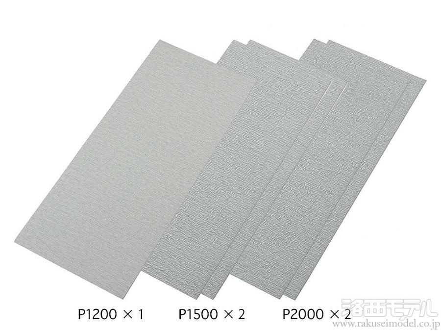 プラスチックモデルの接着部分の修正や、パテ盛り部分の整形や仕上げ、木材や金属の下地磨きなど幅広く使える紙ヤスリです。
